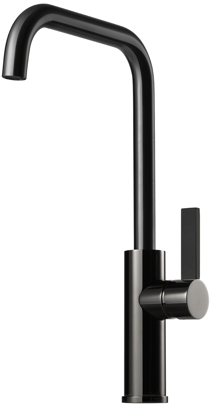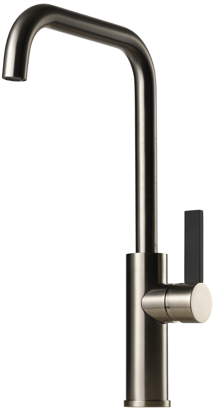 Köksblandare med svängbar bockad pip. Pipens svängradie går att begränsa till mellan 60 och 270 grader med 15 graders intervaller.