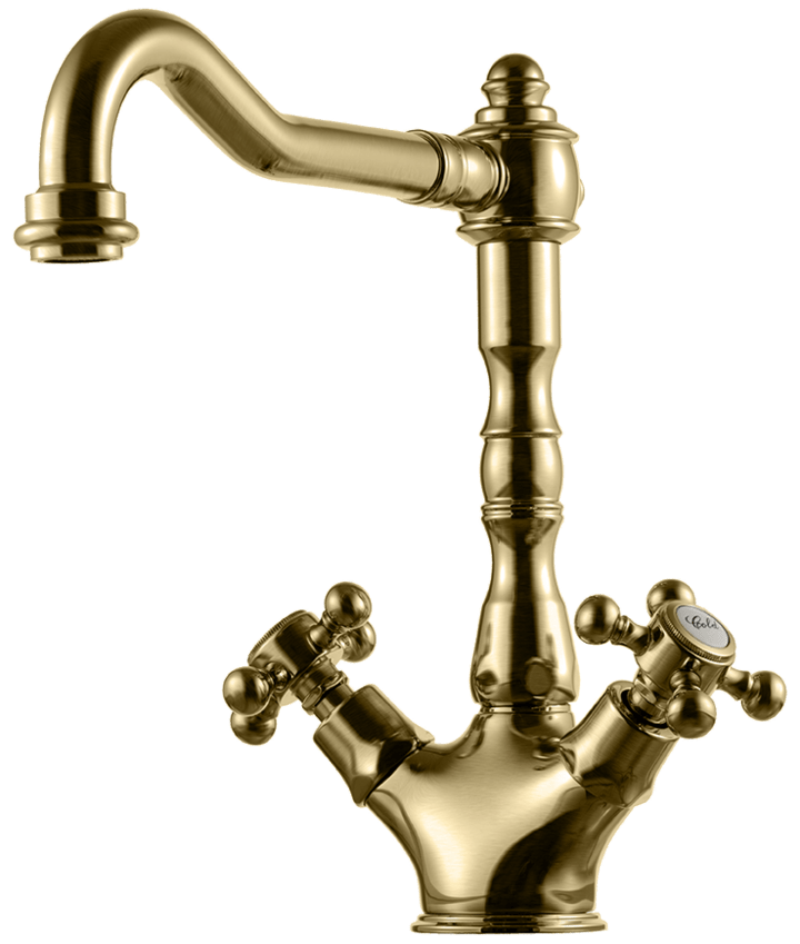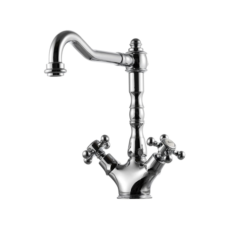 Klassiskt utformad tvågrepps köksblandare med mjuka linjer.