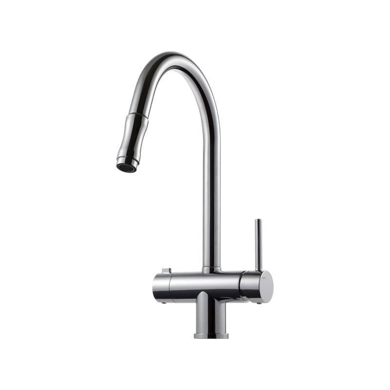 Köksblandare med utdragbar pip och diskmaskinsavstängning. Pipen går att begränsa till 120 eller 160 graders svängradie. OBS – håltagning Ø40 mm.