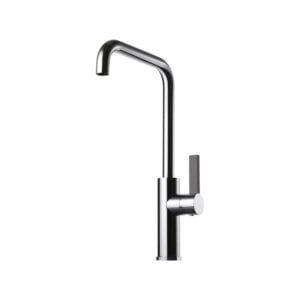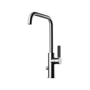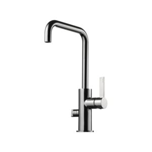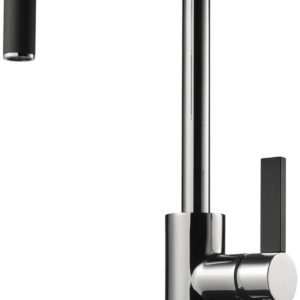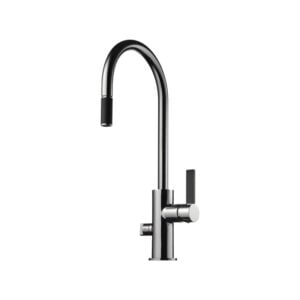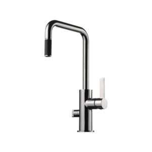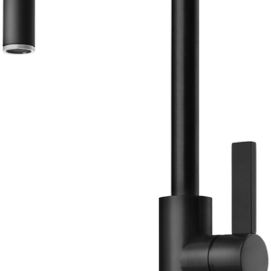 Köksblandare med hög svängbar pip och utdragbar handdusch. Pipens svängradie går att begränsa till mellan 60 och 270 grader med 15 graders intervaller.