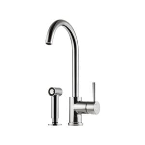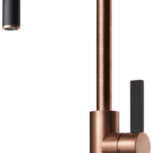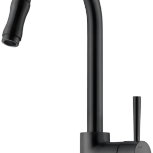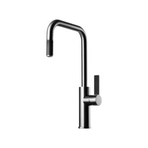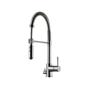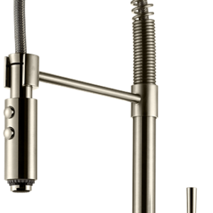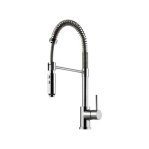 Ettgrepps köksblandare Professional. Handduschen går lätt att haka av staget och knapparna används för att växla mellan vanligt flöde och bred duschstråle.